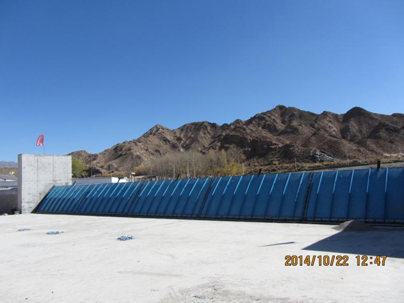 氣盾壩,是一種新型的擋水結構,其兼具橡膠壩和鋼閘門的優(yōu)點,剛柔并濟,該結構由美國0HI公司于20世紀90年代研制而成.其結構主要由盾板、充氣氣囊及控制系統(tǒng)等組成。利用充氣氣囊支撐盾板擋水,氣囊排氣后塌壩,氣囊臥于盾 板下,可避免河道砂石、冰凌等對壩袋的破壞;氣囊內(nèi)填充介質(zhì)為氣體,塌壩迅速:各個部件均為預制部件,安裝工期短;盾板及氣囊模塊化,便于修復。